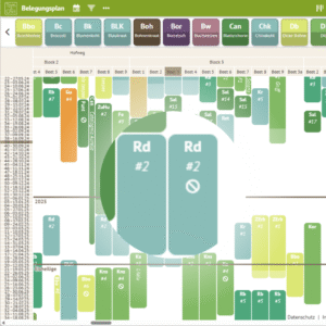 Im Belegungsplan erkennst du Anbaupausen, die nicht eingehalten wurden, an einem durchgestrichenen Kreis. Ein Tooltipp liefert dir genauere Infos.